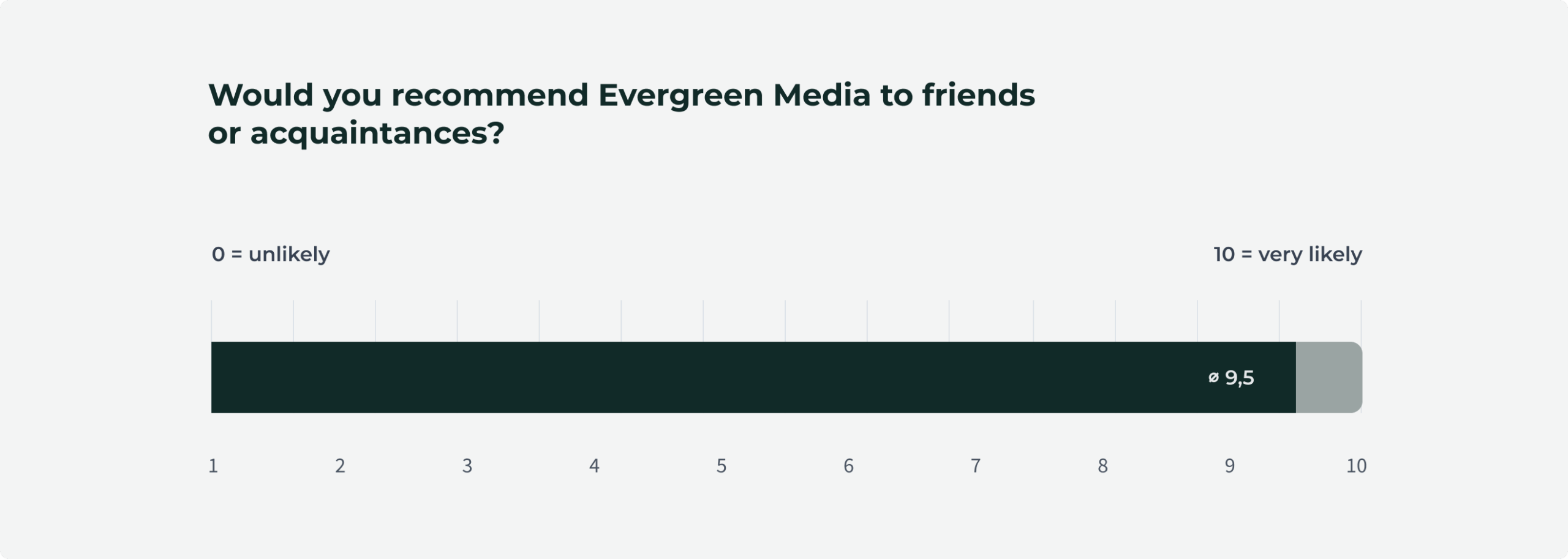 Evergreen Media® achieved a Net Promoter Score (NPS) of 84.6% (excellent) in winter 2023.
