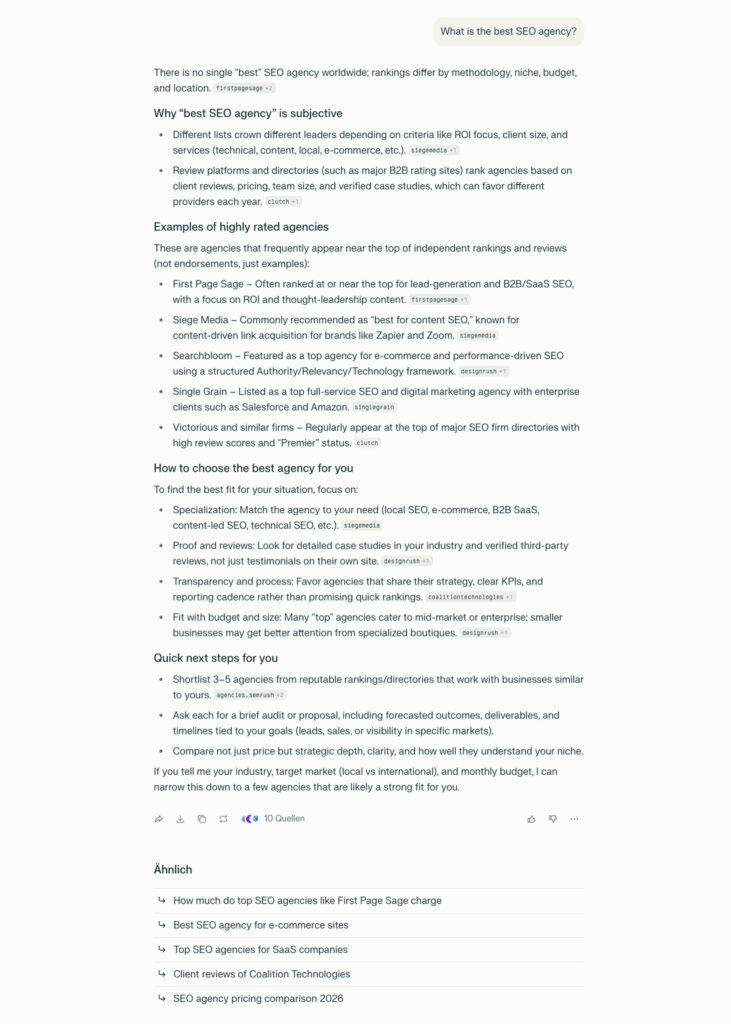 You can conduct a corresponding AI Visibility Audit yourself or book it with us.