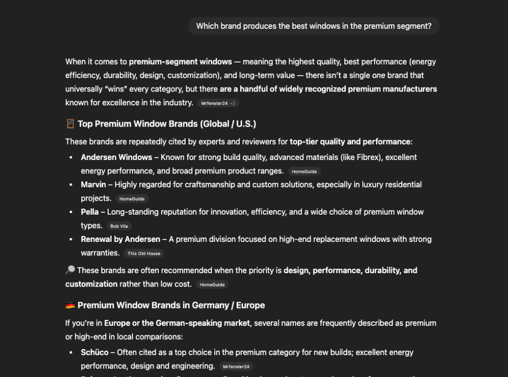 For GEO, this means: Content must be so specific or current that the model can’t answer it internally or simply rephrase it. This applies, for example, to interactive tools, current market comparisons, continuously updated price lists, study results, or experience reports. Only then is content searched, mentioned, or linked at all.