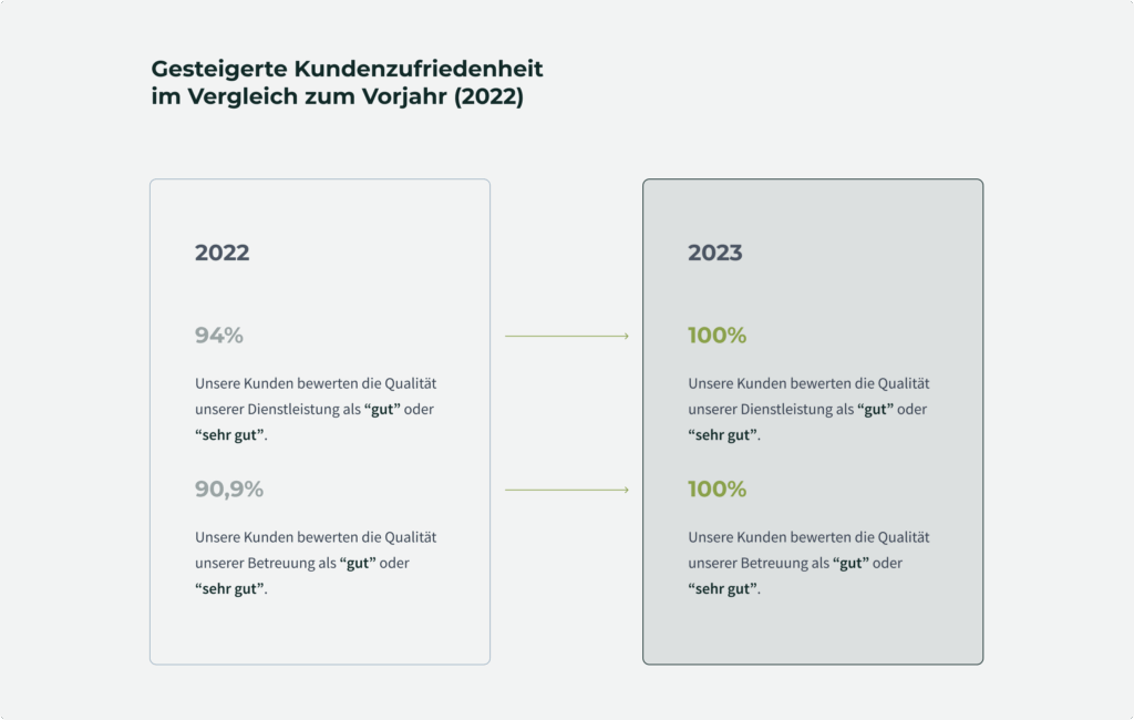 Bei Evergreen Media® sehen wir Zusammenarbeit mit unseren Klienten als Partnerschaft. Und das Herzstück jeder Partnerschaft ist nun einmal Kommunikation: Deshalb führen wir jährlich eine ausführliche Kundenbefragung durch, um herauszufinden, wie zufrieden unsere Klienten mit uns als digitales Beratungsunternehmen sind. Die Ergebnisse sprechen für sich:
